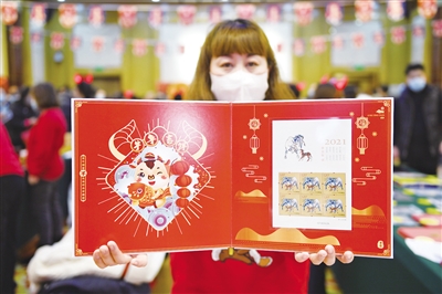 1月5日,中国邮政集团公司呼和浩特市分公司工作人员展示《辛丑年》特种邮票。当日,《辛丑年》特种邮票正式上市发行。该邮票通过动与静、力量与温情的结合,将生肖牛“脚踏实地、敢于拼搏、开拓进取、勤劳奉献”的精神内涵进行了生动诠释与艺术展现。摄影/北方新报正北方网记者 牛天甲