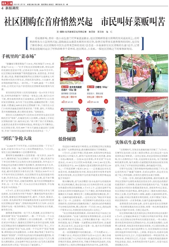 1月4日,记者又走访调查了内蒙古师范大学北门周边商家、东瓦窑批发市场个体商户、馨康花园和金河湾小区发现,随着社区团购遍地开花,超市、干洗店、服装店、小饭馆、菜鸟驿站等许多商铺都在经营主业的同时经营社区团购这份“副业”,团购的商品种类主打生鲜,由社区团购平台统一配货和售后,“团长”则负责转发当日优惠、接货及分发。