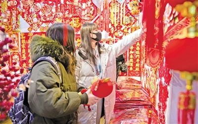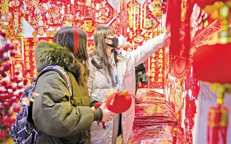 1月14日,首府市民正在选购年货。据了解,随着年关临近,呼和浩特市年货市场节日饰品开始热销,人们开始购买灯笼、春联、福字、挂件等饰品。