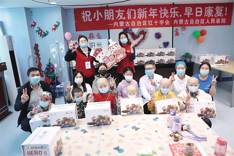 1月20日,自治区红十字会工作人员走进内蒙古自治区人民医院、内蒙古医科大学第一附属医院、内蒙古国际蒙医医院开展“冬暖童心·关爱血液病儿童”活动,为住院治疗的49名血液病儿童送去新年礼物——英雄能量包和慰问金,鼓励他们勇敢战胜病魔,早日康复。本次活动自治区红十字会共计投入关爱生命健康基金14.7万元。接下来,自治区红十字会将继续为2020年申请“小天使专项基金”(白血病患儿救助)和“天使阳光专项基金”(先心病患儿救助)项目待资助的111名患儿发放英雄能量包。