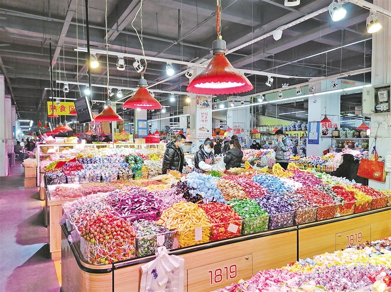 此外,在美通批发市场内,各家米面粮油经销商也备足了年货。
