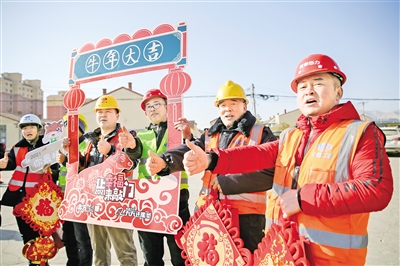 1月22日,北方新报正北方网联合阿里巴巴天天正能量发起的“2021,让幸福来敲门!”暖心公益行动走进呼和浩特市金川开发区,将大红灯笼、中国结以及书法家手写的春联送到留守在工地的工人手中。当日,“2021,让幸福来敲门!”暖心公益行动先后走进保全庄农贸市场、呼和浩特市回民区多个老旧小区、残障儿童康复机构、工地,为特殊家庭、孤寡老人、残障机构、留守过年的外来务工人员送上新春的祝福与温暖。(相关报道见8~9版) 摄影/北方新报正北方网记者 牛天甲