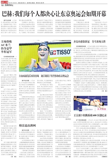 巴赫:我们每个人都决心让东京奥运会如期开幕