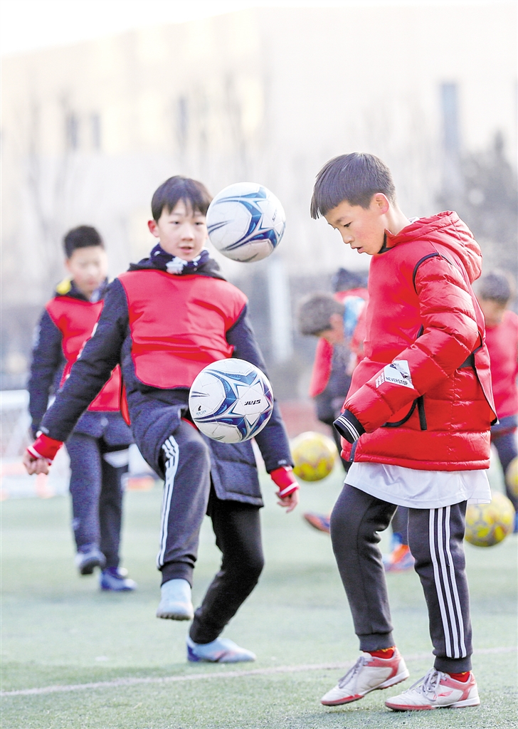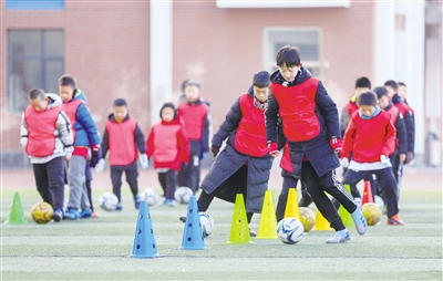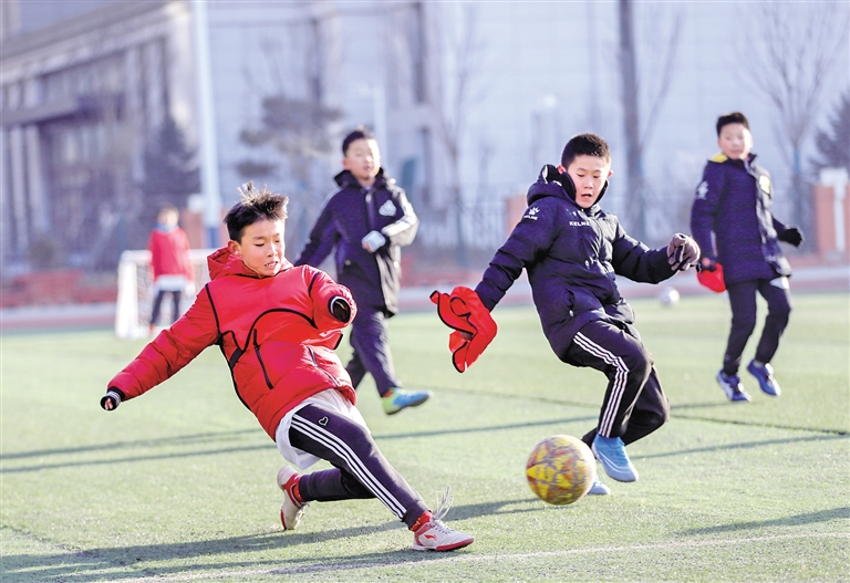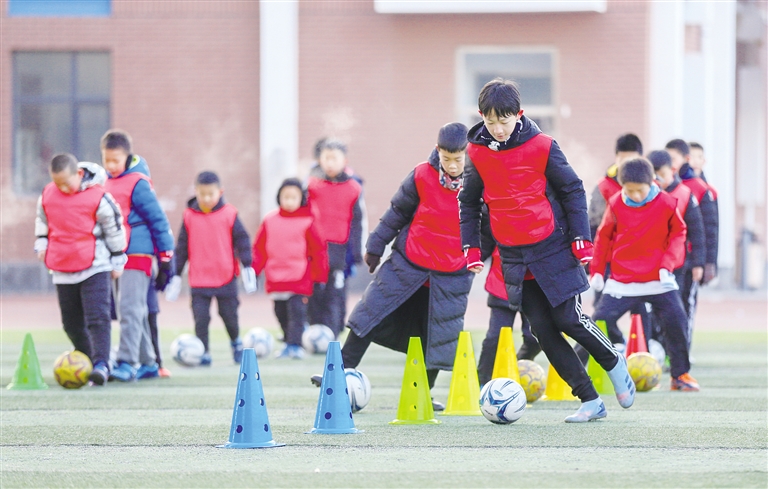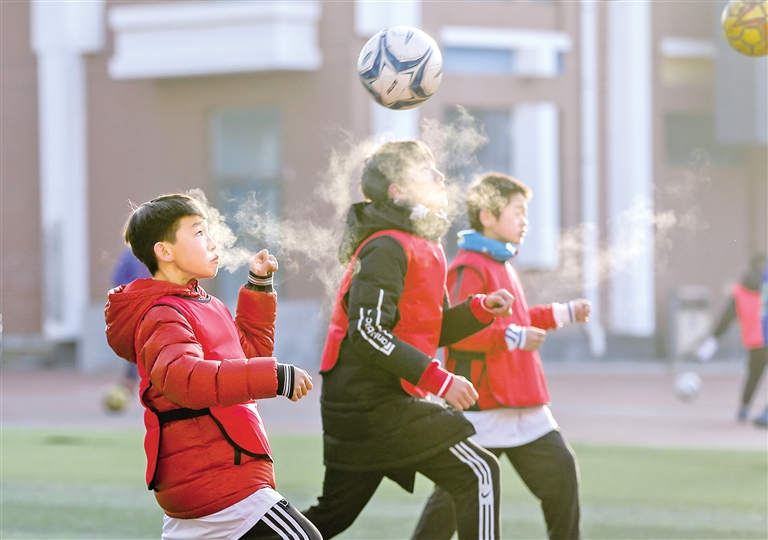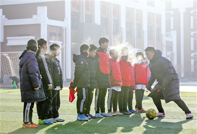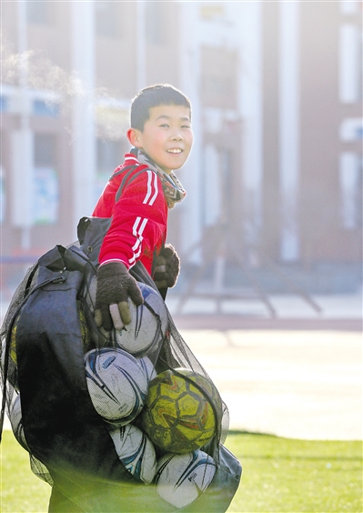 在训练的队伍里,五年级的杨杰训练起来很认真,动作也很标准,属于校队中的佼佼者,也是整个校足球队的小缩影。他告诉记者,自己很喜欢踢足球,踢足球能让他开心快乐,即使寒冬腊月在室外奔跑,也不会觉得冷,反而还有点热。