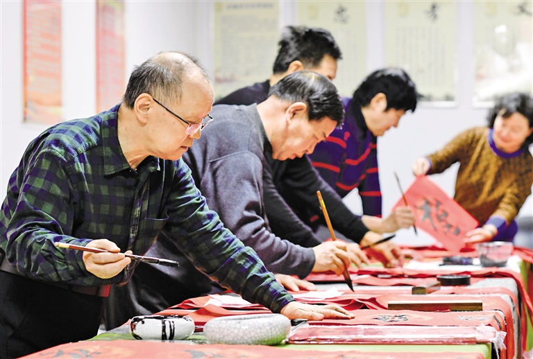 1月27日,在呼和浩特市赛罕区万达社区文化室,书画爱好者正在书写春联。当日,万达社区举办“邻里一家亲 欢喜迎新春”主题活动,社区居民聚在一起写春联、赏年画、剪窗花、制作吉祥物,感受传统文化魅力,迎接春节的到来。(据新华社报道)