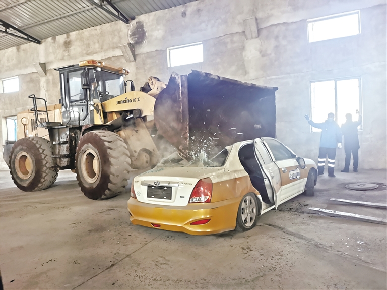 销毁现场,冒牌顶灯摆了一地,除了有“滴滴出行”“代步”等假的顶灯,还有来自套牌出租车上高仿顶灯,以及各类计价器、假车牌,63辆被扣车辆整齐停放,等待被集中销毁。据了解,这些被查扣的车辆的车主在规定期限内拒不接受处理,有关部门通过新闻媒体予以公告,告知当事人限期接受处理,公告期满仍不接受处理的,委托市公共资源交易中心进行评估、依法处置、报废销毁,所得残值依法上缴国库,截至目前,有关部门已经依法集中销毁无证及套牌车9次共计419台,本次为第10次集中销毁处理。