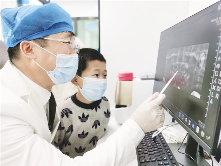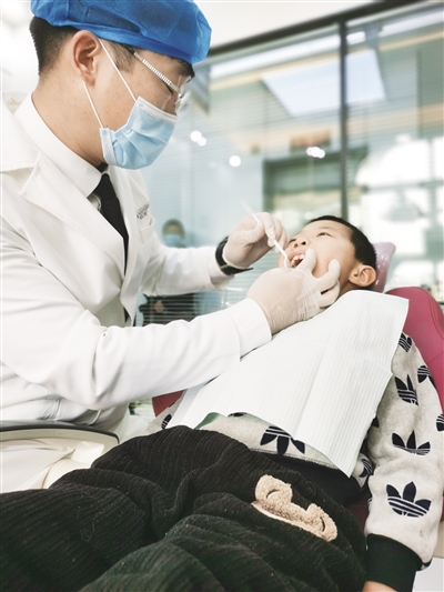 15时许,徐杰和记者带着洋洋祖孙俩来到了黄氏口腔医院第四门诊部。第一次看牙,洋洋有些紧张,但对医生和护士的要求还是配合得很好。黄小彦初步检查了洋洋的牙齿,又拍了片。洋洋前门牙需要做矫正治疗,还有4颗牙齿需要做窝沟封闭。黄小彦告诉大家,洋洋的牙齿至少需要治疗3个月,每周过来进行一次治疗。