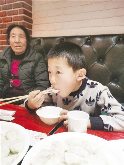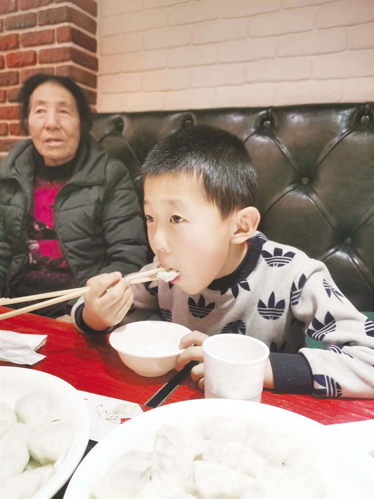 在万达广场,洋洋跟奶奶坐了迅游小火车,还玩了好几项儿童游乐项目,又去超市选购了零食。中午,志愿者们和祖孙俩吃饺子。鲅鱼馅、鲜虾馅、猪肉香菇馅的饺子,洋洋吃得不亦乐乎。吃剩下的十几个饺子,渠顺梅小心地装在塑料袋里,嘴里念叨着:“这么好的饺子别浪费了。”