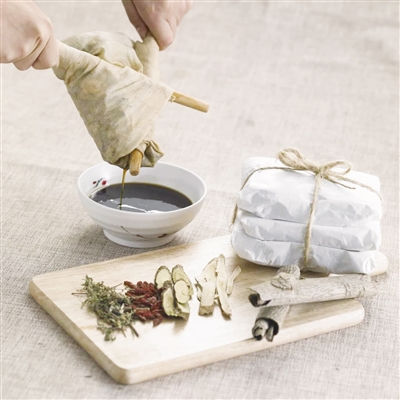 冲服。某些芳香或贵重药物不宜加热煎煮,可研成粉末冲服。如有复煎或三煎,应合并药液后,再加入冲服的药物,然后分次服用或者将冲服的药物按服用次数平均分好,每次服药时加进去。