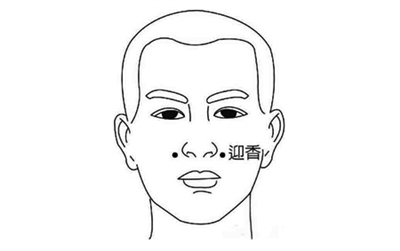 手法:以一手拇指按在一侧迎香穴(鼻唇沟上,鼻翼中点旁开0.5寸)上,先顺时针揉10~15次,再逆时针揉10~15次。再换另一侧,揉迎香穴。