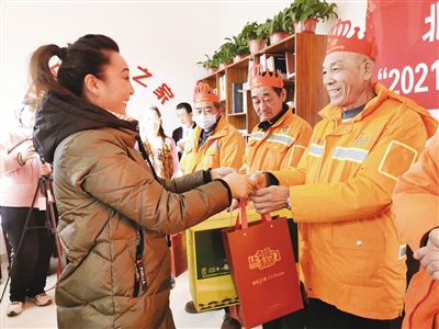 当日,北方新报正北方网联合阿里巴巴天天正能量发起的“2021,让幸福来敲门!”暖心公益行动走进青城驿站,为来自赛罕区的环卫工人们举办了一场集体生日会,以此来感谢城市美容师的辛勤付出。