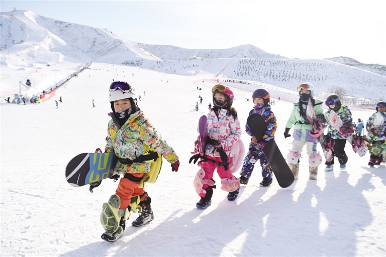 2月2日,在新疆阿勒泰市将军山滑雪场,小朋友准备学习滑雪。立春节气来临,位于新疆北部的阿勒泰地区依然是一片冰雪世界,市民不惧寒冷,积极参与冰雪运动,迎接春天的到来。 摄影/新华社记者 沙达提