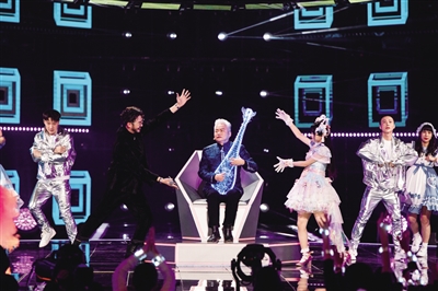 国乐大师方锦龙与B站UP主“机智的党妹”、网络红人潇公子同台上演跨次元大秀《开新节拍一起嗨》。方锦龙更是首次带来一把蓝色眩光电琵琶,为传统民乐平添一份未来科技感,二次元风效果拉满。