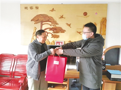 中国结、灯笼、春联、日用洗化套装、沙葱挂面礼盒、酱腌菜礼盒……老人还收到了装着满满年味儿以及新春祝福的“福袋”。这些祝福来自完美(中国)有限公司内蒙古分公司、鄂尔多斯市沙之绿有机食品有限公司、魔豆妈妈雷碧霞等爱心企业和人士。“老伴儿,咱们赶快把中国结和红灯笼挂起来,好好装扮一下咱家!”接过满满的祝福后,王心海招呼着老伴儿。随后,记者也加入进来,大家有的挂灯笼,有的挂中国结,老人的家里一下子变得年味十足。“感谢贵报和爱心企业,不仅帮助我实现了新年愿望,还送来了满满的新年祝福。你们的爱心举动极大地鼓舞了我,今后,我要继续创作更多的好作品,来赞美家乡、赞美草原!”王心海老人感激地说道。
