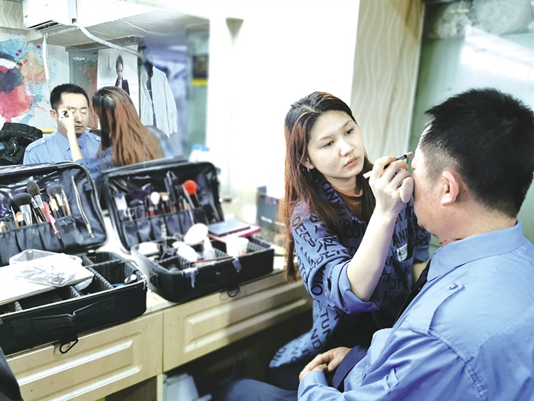 影楼的化妆师为他们化了精致的妆,化妆时,他们不停地说“谢谢”“麻烦了”。郑国文年迈的父母相互扣着衣服纽扣,岁月的痕迹,掩饰不住的是期待和兴奋。