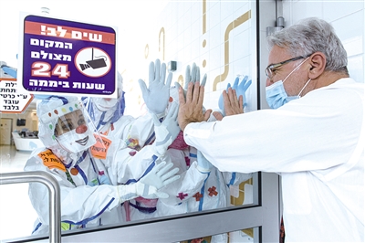 2月4日,“医疗小丑”在以色列北部城市采法特的齐夫医学中心工作。讲故事、变魔术、带着患者一起跳舞……新冠疫情期间,以色列医院里,一个特殊的群体正施展自己爱与幽默的力量。这些被称为“医疗小丑”或“梦想医生”的人在严格的卫生防疫措施下,帮助患者在欢笑中配合治疗、暂时忘却孤独和痛苦。(据新华社报道)