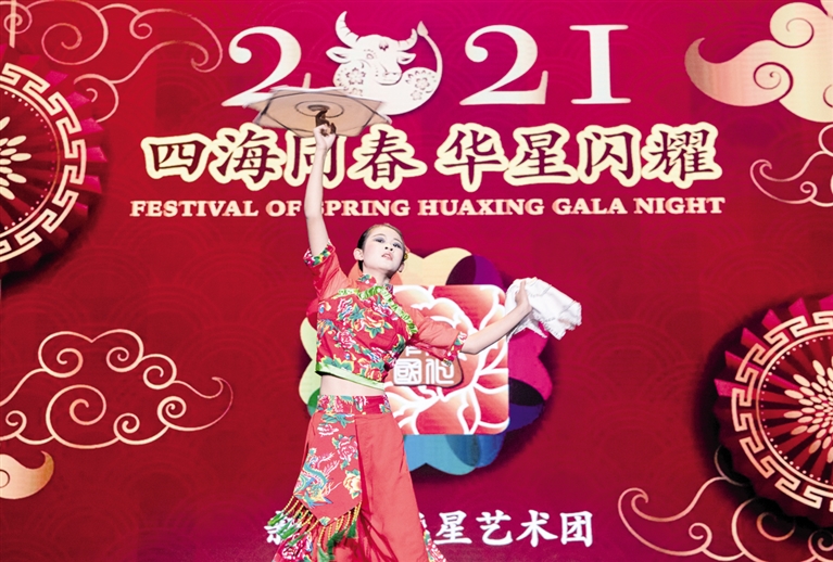 2月7日,在新西兰奥克兰举行的华侨华人新春晚会上,演员表演独舞《瑞雪兆丰年》。2月7日晚,由新西兰华星艺术团主办的2021“四海同春·华星闪耀”华侨华人新春晚会在新西兰最大城市奥克兰举行。摄影/孙学良