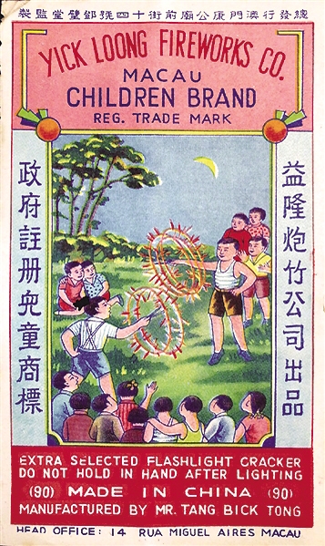此外,在民国初期的国际贸易中,一部分烟花爆竹还被销售到了世界各地,爆竹标也是商家信誉、声望的代言,为业界所认可。如澳门从上世纪初到50年代,生产的鞭炮都大量出口,不同的生产厂家及经销商,都很注重爆竹标,会尽力突出贴画上的文化内涵,使之产生如同年画一样的社会影响力,对当时的产品出口及老百姓的生活,都产生过很大的影响,由此成为一份特殊的见证,接续着城市的历史。