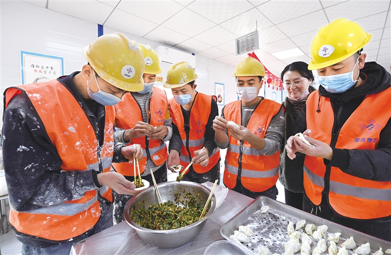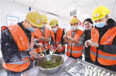 2月8日,内蒙古自治区建筑建材交通机冶工会联合中建三局赴中央民族大学附属中学呼和浩特分校建设项目部开展“迎新春送温暖”稳岗留工慰问活动,为就地过年的工友们发放了100份慰问礼包以及书籍、春联等慰问品。项目部还为就地过年的工友准备了丰盛的团圆饭,工友们一起贴对联、包饺子、吃团圆饭。摄影/北方新报正北方网记者 王利军