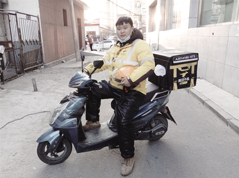 24岁的宝明来自内蒙古通辽市一个嘎查,是美团外卖鼓楼站点的一名外卖小哥。春节临近,宝明决定留在呼和浩特市过春节。“父母亲也理解我,给我邮寄来一大箱子排骨。父母在家里安好,我在这里过年,心里就踏实了。”