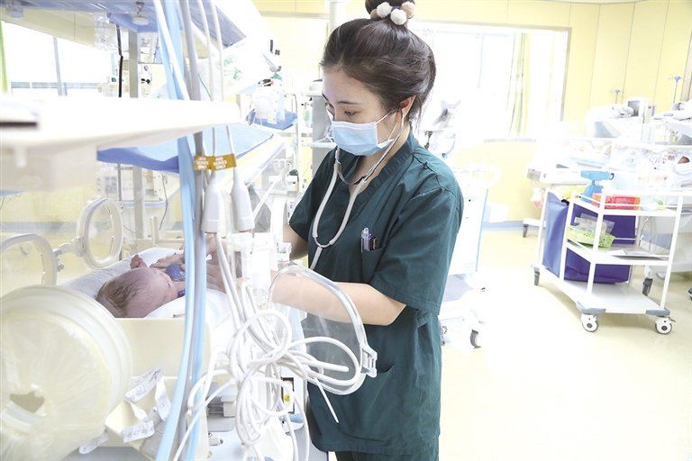 1月31日18时,王明佳走上工作岗位,开始值夜班。完成交接班后,她便进入重症监护室,查看40多个宝宝的状况。每天都有小宝宝出生,王明佳也时刻准备着,抢救新生命。王明佳几乎没有假期,工作紧张又忙碌。