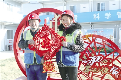 该项目已经完成主体工程并封顶,正在进行室内装修。工人杨敬民正在抹灰、砌墙,他的妻子丁锁英在一边推灰、上砖。今年,夫妻俩决定就地过年。