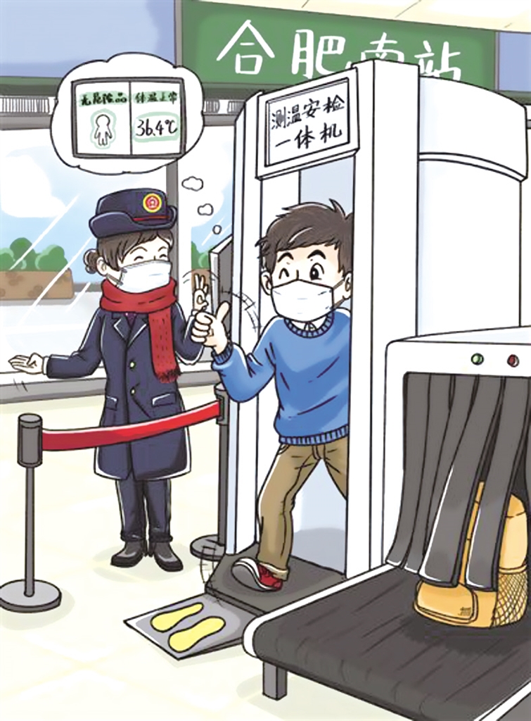合肥南站设置测温安检一体机,南京南站架起红外线“测温门”,杭州东站加设免费口罩领取机……春运期间,为降低新冠肺炎疫情传播风险,铁路部门着力打造低密度、“分散式”候乘车环境,推广“无接触”设备、提升自助服务体验,为安全有序完成旅客运输任务提供坚实保障。