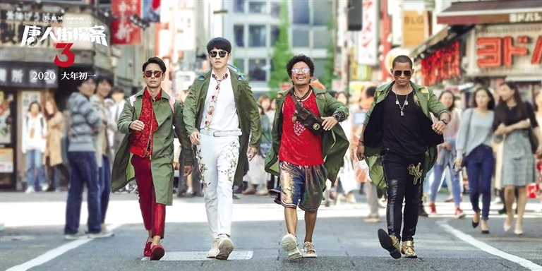 《唐人街探案3》基本上是按照两条线索在推进,一条是王宝强饰演的唐仁和刘昊然饰演的秦风等人组成的侦探组的侦破过程,另一条就是借由染谷将太饰演的村田昭这个角色而逐渐揭开的“Q”身份的过程。除此之外,作为一部春节档的大片,《唐人街探案3》还需要将欢乐喜庆的气氛带给观众,营造合家欢的节日氛围,而要想将这三者完美地结合在一起,显然不是一件很容易的事情。