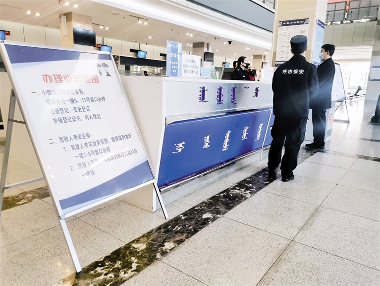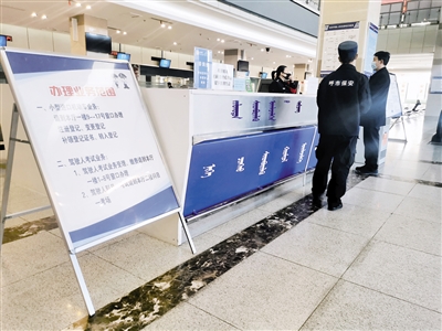 “你好!违章查询和罚款缴纳需要去交管队,不在这里办理。如果是本人车辆,也可下载12123 APP进行办理。”2月18日9时10分,记者走进呼和浩特市交警支队车辆管理所,在政务服务中心东大厅正对着大门的导办台,一位民警正在接受市民业务咨询。记者看到,大厅里往日喧嚣热闹的场景不见了,只有零星几位市民在办理业务。