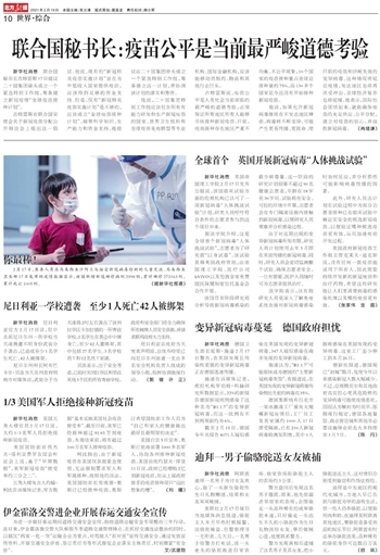 联合国秘书长:疫苗公平是当前最严峻道德考验