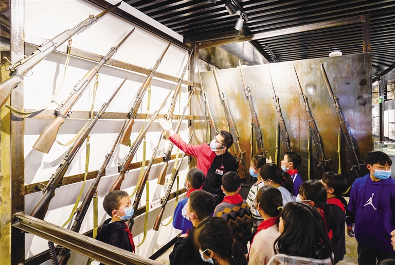 2月24日,在九龙坡区重庆建川博物馆,留守儿童、困难家庭青少年在参观游览。当日,共青团重庆市九龙坡区委联合共青团重庆市城口县委共同开展“童心向党·争做新时代好队员”红领巾春季公益营活动,30名来自城口县贫困山区的留守儿童和困难家庭青少年,在共青团青年志愿者的陪伴下来到重庆市九龙坡区游学参观。