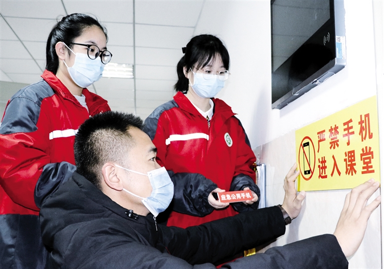 与此同时,学校还将各班级班主任电话公布给家长和学生,同时给每个班级配备一部非智能手机(俗称“老人机”)。作为公用手机,“老人机”全天静音状态,放置于班级固定位置,设置一名手机管理员,负责管理使用本班级公用手机。如果家长有急事联系学生,可以通过班主任联系,或者直接发信息给班级公用电话,在课间由班主任或班级手机管理员通知学生本人,以解决家长紧急联系学生的需求。