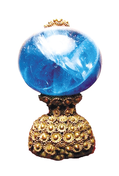 在宝石学上,红宝石与蓝宝石合称“刚玉”,但蓝宝石的产量较红宝石更大,分布范围也更广。由于蓝宝石色泽优雅,其受欢迎程度不亚于红宝石,所以价格上与红宝石相比毫不逊色。我国明清两代,蓝宝石也从缅甸大量输入,缅甸地区产的蓝宝石质量上乘,其呈鲜艳的蓝色,可产生六射或十二射的星光,令人目眩神迷。与红宝石一样,清宫中蓝宝石储量也十分惊人,据说慈禧的陪葬中就有蓝宝石饰物上千粒,其中重68克拉的大粒蓝宝石就有18粒。