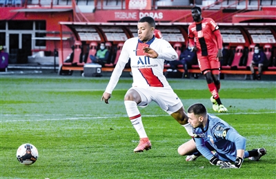 尽管有包括内马尔、迪玛利亚以及维拉蒂在内的多名主力缺阵,但“大巴黎”的实力还是明显比对手高出许多。比赛刚开场不到6分钟,基恩接迪亚洛传球破门。第31分钟,姆巴佩利用点球机会将比分改写为2:0。