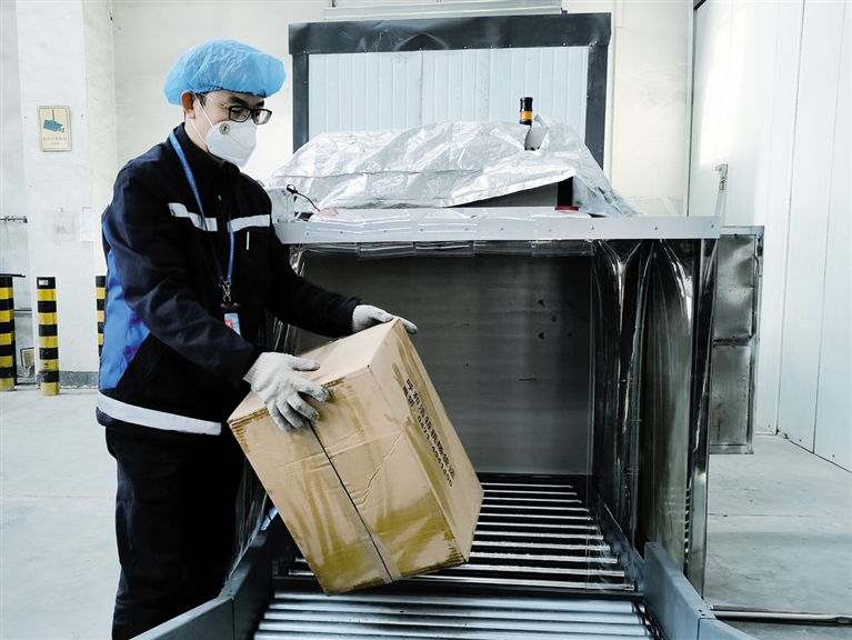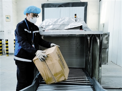 当日,记者实地探访了呼和浩特白塔国际机场内安全防护保障,记者看到,从出发的旅客进入候机楼大门起就开始接受至少6个步骤的安全防护保障,从鞋底消毒、体温检测、口罩佩戴查验、证件消毒、安检区域“一客一消”、登机口消毒到行李货运消毒(如图)等,每个环节都严格开展安全防疫。据机场集团工作人员介绍,一系列防控措施,就是为旅客创建安全的出行环境,切实想旅客之所想,忧旅客之所忧,尽心竭力站在旅客角度做好疫情防护工作,打消旅客出行顾虑,让旅客出行更加放心、安心。