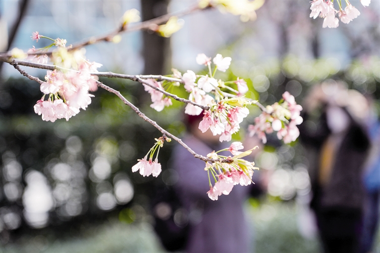 3月2日在静安雕塑公园拍摄的樱花。当日,上海阳光明媚,上海静安雕塑公园的樱花大道上早樱盛开,吸引众多市民游客前来观赏樱花,享受美好春光。