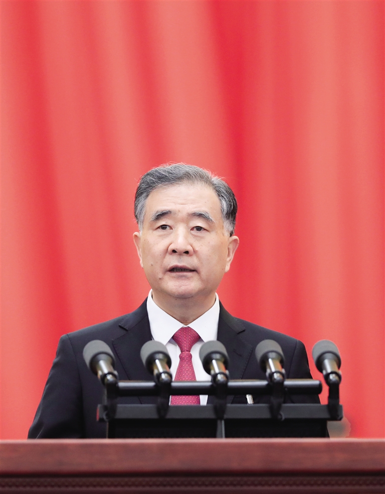 汪洋代表政协第十三届全国委员会常务委员会,向大会报告工作。