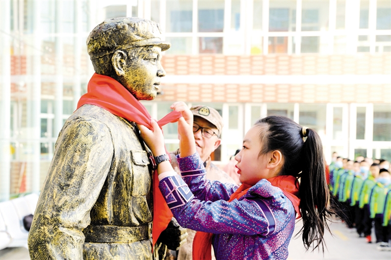3月4日上午,呼和浩特市赛罕区大学路小学呼伦南路校区“学习雷锋好榜样”——小小志愿者活动月如期拉开了帷幕。在启动仪式上,少先队员为雷锋雕像系上红领巾,并表演了诗朗诵《雷锋不老》、合唱《学习雷锋好榜样》等节目。该校还邀请全国学雷锋优秀个人、内蒙古好人穆永俊为少先队员们讲述如何用行动践行雷锋精神,鼓励大家争做学雷锋好少年。 摄影/北方新报正北方网首席记者 王树天
