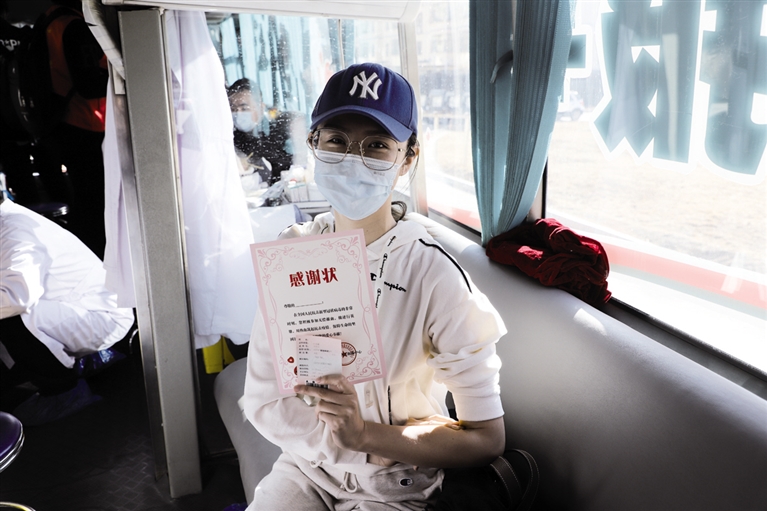 天津财经大学珠江学院学生蔺雅琴也是第一次献血,顺利献血300毫升后特别开心。蔺雅琴是呼和浩特市红十字志愿者,不久前刚刚结束春运志愿服务。受疫情影响,学校推迟开学,在家中上网课的她报名参加了这次活动。“无偿献血对自己来说只是举手之劳,而对别人来说却是挽救生命,值得去做。”蔺雅琴兴奋地说。