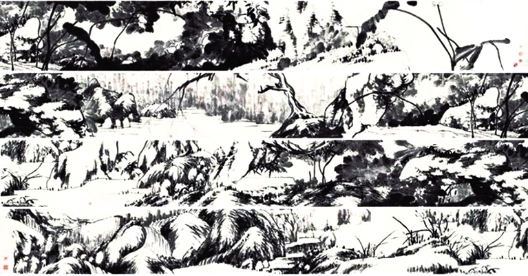 杨旭表示,此卷整体气势磅礴,笔势跌宕起伏,构图疏密相间,用墨苍中见润,与自赋《河上花歌》的诗作及其书法,构成了诗、书、画相互辉映的艺术整体,不仅是朱耷一生中最长最好的作品,更是其艺术与人生完美结合的一幅难得的珍品。