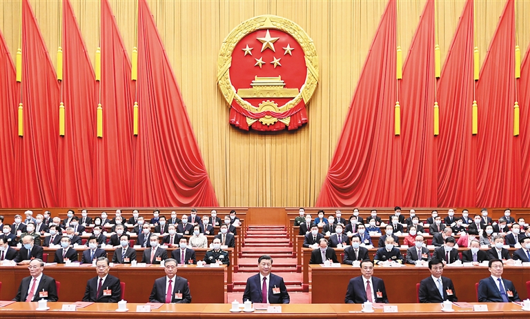 习近平、李克强、汪洋、王沪宁、赵乐际、韩正、王岐山和大会主席团成员在主席台就座。