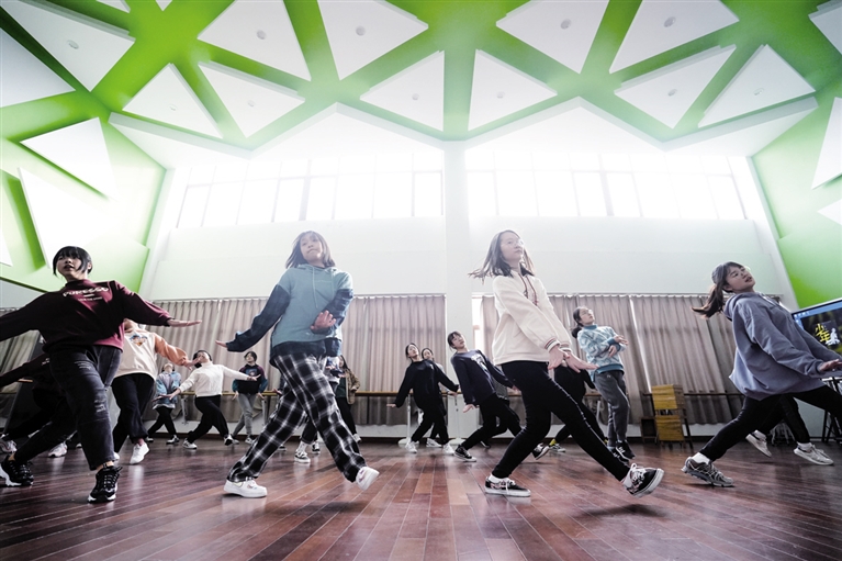 3月10日,在江苏省锡山高级中学,学生在练习拉拉操。为了落实学生“每天锻炼一小时”的要求,江苏省锡山高级中学于2015年整体构建了巅峰体育课程体系及其运行机制,以“天天一节体育课”呈现了“每天锻炼一小时”的解决方案。