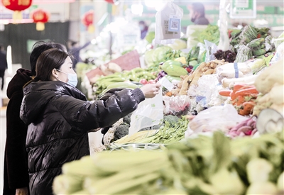 3月16日,首府市民正在农贸市场选购新鲜蔬菜。全区各盟市价格监测机构上报的数据显示,2月25日至3月5日,我区猪肉、牛肉、鸡肉、鸡蛋、蔬菜类价格下降。其中,全区蔬菜综合平均价格为3.80元/500克,环比下降7.77%。15种监测的蔬菜品种价格14降1平,降幅前五的品种为尖椒、圆白菜、青椒、芹菜、茄子。与去年同期相比,15个蔬菜品种综合平均价格下降13.64%。 摄影/北方新报正北方网记者 牛天甲