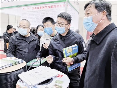 在河北的一家灌溉用品展台前,保定川源灌溉设备制造有限公司总经理王鹏飞向人们大力推荐自家的灌溉产品,“内蒙古是我国干旱缺水区域,本次来到展会,公司带来了滴灌带、主管带、微喷、喷头、出水口及其各种配套管件,供内蒙古的农牧民朋友参观选购。”