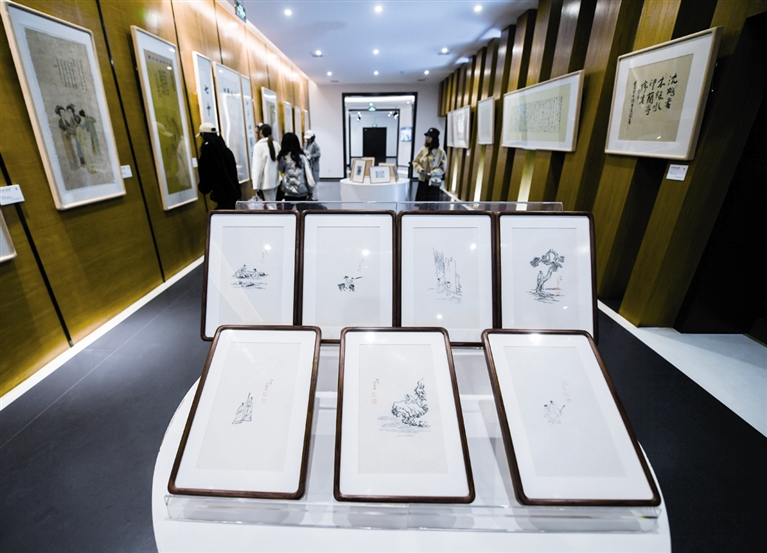 3月16日,在浙江理工大学丝绸博物馆内,学生在观看十竹斋木版水印艺术作品展。当日,“细水长流·木语有声——十竹斋木版水印艺术作品展”在浙江理工大学丝绸博物馆正式开展。2014年,十竹斋木版水印技艺入选国家级非物质文化遗产代表性项目名录。