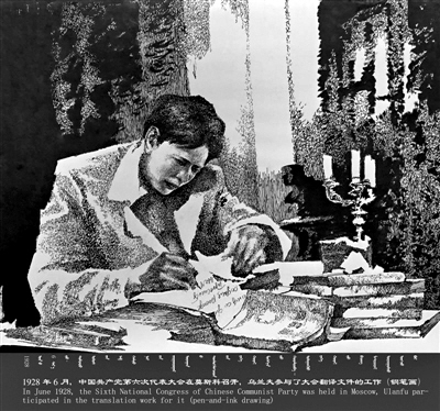 内蒙古党校党史党建教研部教师徐冀宁介绍,1927年7月,乌兰夫从莫斯科中山大学毕业,9月被分配到莫斯科东方大学的中国班担任课堂教学翻译,在课堂上为苏联的老师和来自中国的学员当翻译,这样他的俄语水平在之前的基础上又得到了很大的提高。1928年6月党的六大召开之时,组织安排乌兰夫、佛鼎、李培之等俄语较好的同志去做会议文件的翻译工作。乌兰夫被选调到了大会的秘书处做大会文件的翻译工作。为了保密,乌兰夫直至大会召开前夕、在一个深夜抵达会场之时才得到关于大会的确切通知。乌兰夫后来回忆:“千里挑一,我能被选来做这么重要的工作,表明了组织上对我的信任。”这次工作经历对22岁的乌兰夫来讲是一次很好的历练和锻炼。