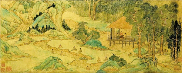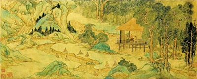 《兰亭修禊图》从画面上看是取材于东晋王羲之的《兰亭序》。