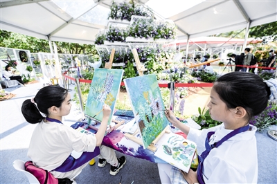3月19日,孩子们在深圳花展开放日上作画。3月20日,“2021粤港澳大湾区深圳花展”在深圳举行。本届花展以“深深的爱”为主题,以月季为主题花,吸引了来自19个国家和地区的430余个参展机构和个人参展,展出新优植物品种1000余种。