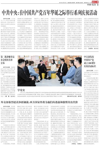 中共中央:在中国共产党百年华诞之际举行系列庆祝活动