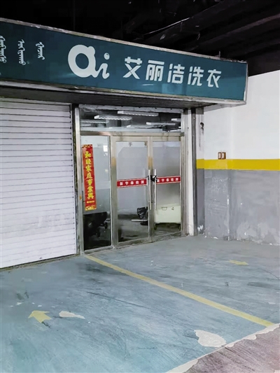 3月23日下午,记者来到奥林花园B区地下停车场实地探访张女士所说的洗衣店。在地下停车场的东南侧,洗衣店内部灯火通明,不停传来机器的轰鸣声,但大门紧闭,门也上了锁。